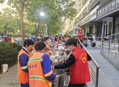 活動現(xiàn)場,鄭州城發(fā)集團(tuán)的志愿者們分工明確,大家搬桌擺椅、準(zhǔn)備熱粥,有條不紊忙碌著。7時剛過,附近的環(huán)衛(wèi)工人、孤寡老人陸續(xù)前來,排起長隊(duì),志愿者們熱情招呼著,依次將熱騰騰的“愛心早餐”分發(fā)到每一位用餐者手里,還不時說著“辛苦了”“謝謝您”“不夠再添”…… 活動現(xiàn)場,一句句暖心話語讓志愿者跟領(lǐng)粥者心拉得更近、氛圍也變得更暖。