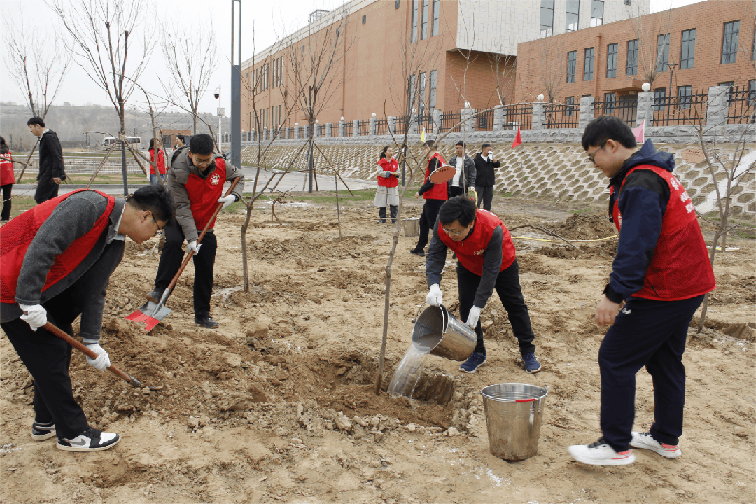 活動(dòng)現(xiàn)場(chǎng),40余名黨員揮鍬鏟土、扶苗培根、提水澆灌,合力種下百余棵“黨員先鋒樹”,從開挖樹坑到搬運(yùn)苗木,從培土固根到引水澆灌,現(xiàn)場(chǎng)繁忙而有序,氣氛活潑而熱烈,大家以樹為筆、以汗為墨,寫下“城發(fā)人”的綠色誓言:種一片林,守一脈水,護(hù)一城人。種植完成后,大家積極懸掛“樹木認(rèn)養(yǎng)牌”,標(biāo)注樹木類別和認(rèn)養(yǎng)人姓名,讓每一棵樹都成為黃河流域高質(zhì)量發(fā)展的“綠色坐標(biāo)”,讓每名黨員都成為綠色發(fā)展的“排頭兵”!
