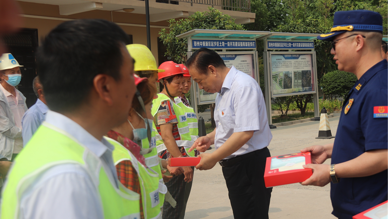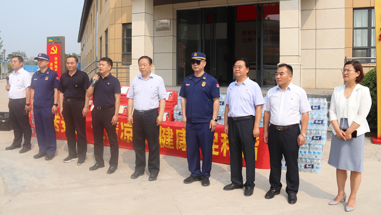 進(jìn)入夏季以來(lái),持續(xù)出現(xiàn)的高溫天氣,給奮戰(zhàn)在建設(shè)一線的施工人員帶來(lái)嚴(yán)峻考驗(yàn),廣大職工不畏酷暑,堅(jiān)守崗位,辛勤付出。為做好廣大職工的防暑降溫工作,切實(shí)保護(hù)職工身體健康,6月11日,鄭州市總工會(huì)、鄭州市消防救援支隊(duì)到鄭州地產(chǎn)集團(tuán)西流湖公司中原新區(qū)土地一級(jí)開發(fā)項(xiàng)目指揮部開展主題為“送清涼、送安全、送健康、促和諧”的夏季送清涼活動(dòng)。鄭州市一級(jí)巡視員、市總工會(huì)黨組書記、主席趙新中,市消防救援支隊(duì)副支隊(duì)長(zhǎng)、滅火救援指揮部部長(zhǎng)李隆,市總工會(huì)副主席宋少丹,鄭州地產(chǎn)集團(tuán)有限公司監(jiān)事會(huì)主席、工會(huì)主席李靜波及西流湖公司黨支部書記、董事長(zhǎng)、總經(jīng)理吉獻(xiàn)亮等領(lǐng)導(dǎo)出席活動(dòng)?;顒?dòng)由西流湖公司副總經(jīng)理昌磊主持。