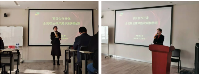 培訓由集團風控法務部部長邵淑毅主講,培訓課題為《項目合作開發(fā)全流程法律風險識別和防范》。邵部長結合豐富的房地產項目合作開發(fā)投資及法務管理風控經驗,聚焦標的項目、目標公司、交易過程三個維度,詳細講解了標的項目權屬爭議、開發(fā)可行性、目標公司股權瑕疵、治理結構、項目鎖定、資金安全等共計24項重大風險。從全流程風險防范的角度,提出四個方面的應對措施:充分全面的盡職調查、合理的交易方案、嚴謹規(guī)范的合同文本、有效的履約管理。最后,邵部長提出集團法務及投資人員在工作中應務必盡心盡責、建立全流程把控理念,在項目風險防控中創(chuàng)造價值。