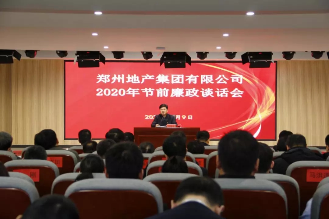 1月9日上午,鄭州地產在301會議室召開2020年節(jié)前廉政談話會,會議由黨委委員、監(jiān)事會主席李靜波主持,黨委書記、董事長萬永生做廉政談話,集團全體人員及各子公司高管共計150余人參加。