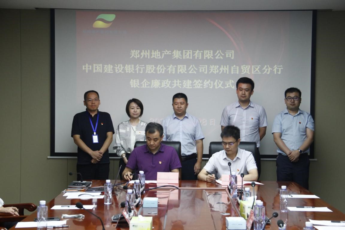 為貫徹落實黨的十九大精神,深入推進全面從嚴治黨、加強黨風廉政建設,7月28日鄭州地產集團有限公司及子公司河南鄭地新城產業(yè)建設發(fā)展有限公司、鄭州商都控股集團有限公司聯(lián)合中國建設銀行股份有限公司、平安銀行股份有限公司在集團3A02會議室舉行了“銀企廉政共建簽約儀式”,以黨建帶業(yè)務、以廉政促效能,推動工作再上新臺階。