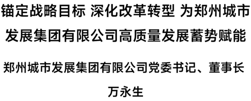 下面,為您推出鄭州城市發(fā)展集團有限公司黨委書記、董事長萬永生署名文章《錨定戰(zhàn)略目標(biāo) 深化改革轉(zhuǎn)型 為鄭州城市發(fā)展集團有限公司高質(zhì)量發(fā)展蓄勢賦能》——