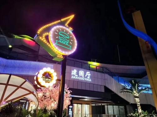 熠熠星光耀向夜空,呼應(yīng)著霓虹閃爍的奧體中心,飄散的煙火氣和美食的香氣充斥著整個(gè)下沉空間,結(jié)束了白天的忙碌,三五好友成群結(jié)隊(duì),覓得美食良店,享受浪漫的環(huán)境,消化一天的情緒。