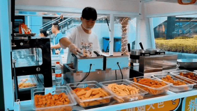 在夜市兩旁,章魚燒、特色酥肉、撈汁小海鮮、小龍蝦……十余家風(fēng)味小吃店一字排開,琳瑯滿目,吸引了不少消費(fèi)者駐足品嘗。