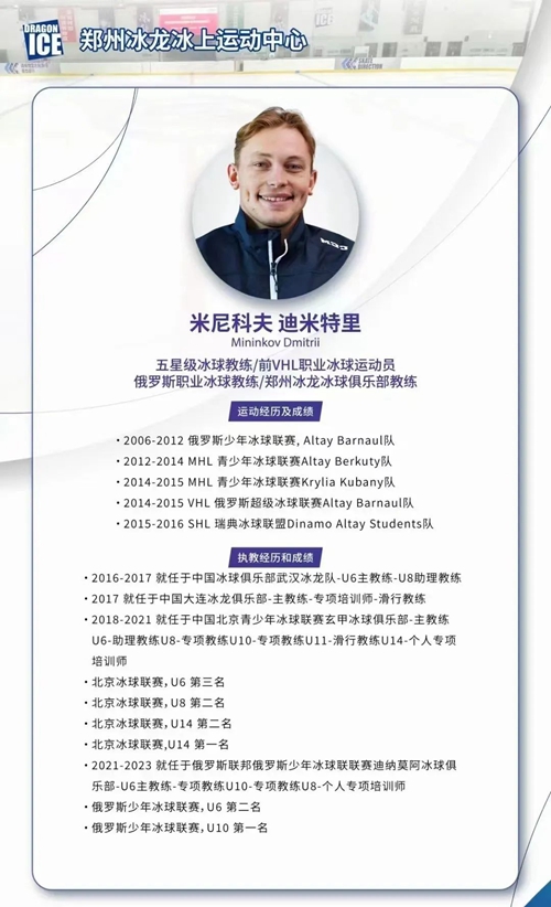 鄭州奧體冰龍冰上運(yùn)動(dòng)中心是一座現(xiàn)代化冰上訓(xùn)練綜合場(chǎng)館。新年伊始,冰龍冰上運(yùn)動(dòng)中心迎來(lái)國(guó)際知名冰球教練米尼科夫·迪米特里,國(guó)家E級(jí)教練員趙鐵北、馬騰飛入駐,將通過(guò)豐富的執(zhí)教經(jīng)驗(yàn)和專(zhuān)業(yè)知識(shí),為河南冰雪運(yùn)動(dòng)注入鮮活動(dòng)力!