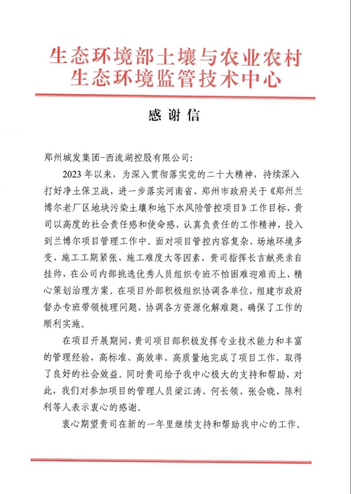 2023年以來,為深入貫徹落實黨的二十大精神,持續(xù)深入打好凈土保衛(wèi)戰(zhàn)。城發(fā)集團以高度的社會責任感和使命感,為人民共建天藍、地綠、水清、景美的鄭州 ,迎難而上,高質(zhì)量完成了項目的工作,確保工作順利實施 。