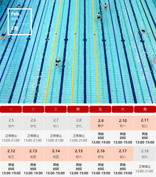 游泳館春節(jié)假期營業(yè)時間: