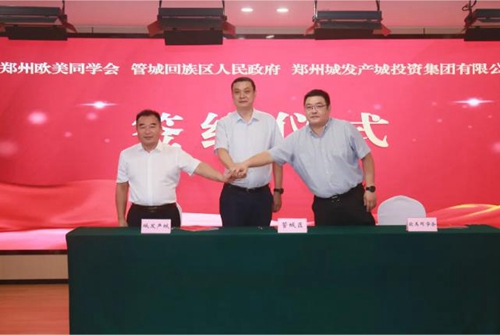 會上,管城區(qū)人民政府、鄭州歐美同學(xué)會及鄭州城發(fā)產(chǎn)城投資集團有限公司三方代表正式簽署了戰(zhàn)略合作協(xié)議,與會領(lǐng)導(dǎo)共同為鄭州歐美同學(xué)會海創(chuàng)中心管城分中心及青年創(chuàng)新創(chuàng)業(yè)基地進行揭牌。