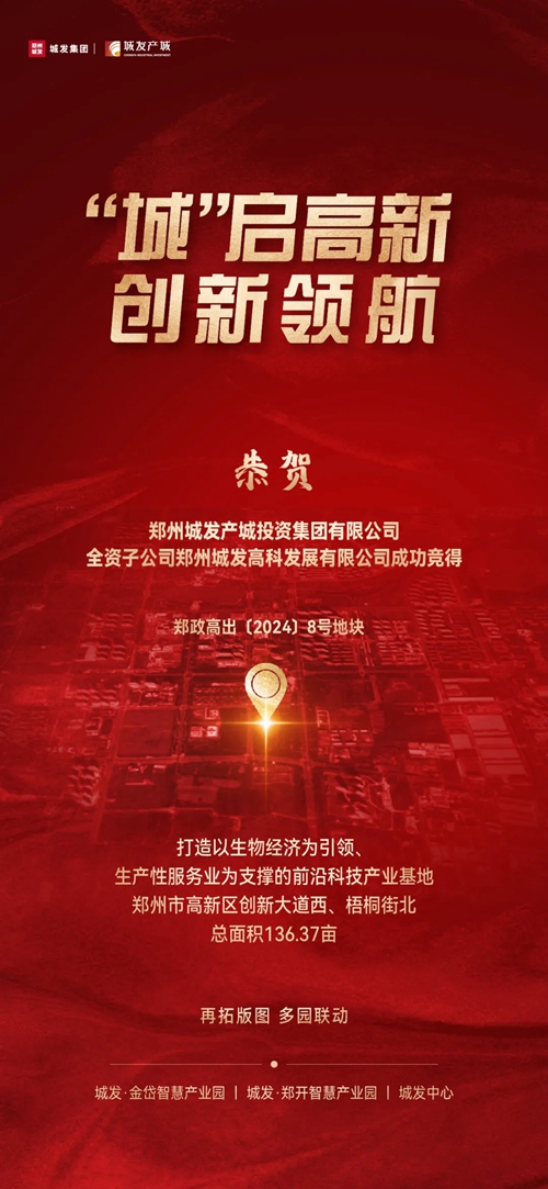9月29日,鄭州城發(fā)產(chǎn)城投資集團(tuán)有限公司全資子公司鄭州城發(fā)高科發(fā)展有限公司成功競(jìng)得鄭政高出〔2024〕8號(hào)地塊,該地塊位于鄭州市高新區(qū)創(chuàng)新大道西側(cè)、梧桐街北側(cè),為一類工業(yè)用地(小微企業(yè)園用地),總面積136.37畝。