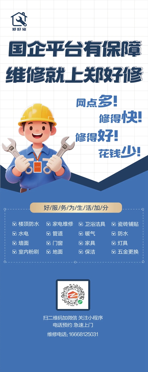 “鄭好修”平臺的市場化拓展路徑清晰明確。平臺將圍繞水電安裝維修、管道疏通、防水補漏、門窗安裝維修4大類11大項410小項開展業(yè)務,未來將逐步拓展家用電器售后維修服務領(lǐng)域,形成“政府主導,市場化運作”的綜合維修服務模式。