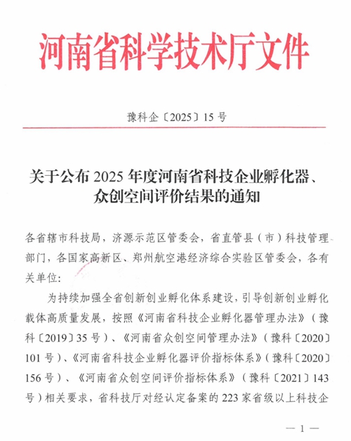 近日,河南省科學技術廳正式發(fā)布《關于公布2025年度河南省科技企業(yè)孵化器眾創(chuàng)空間評價結果的通知》(豫科企〔2025〕15號),鄭州城發(fā)集團金岱智慧產(chǎn)業(yè)園憑借扎實的孵化服務能力、突出的創(chuàng)新培育成效,在全省223家省級以上科技企業(yè)孵化器的嚴格考評中脫穎而出,榮獲最高考核等級——“優(yōu)秀(A類)”!