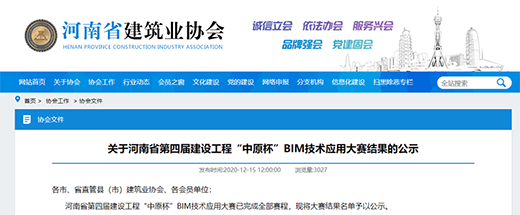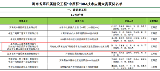 近日,由河南省住建廳指導、河南省建筑業(yè)協(xié)會主辦的河南省第四屆建設(shè)工程“中原杯”BIM技術(shù)應用大賽獲獎名單揭曉,經(jīng)過層層評審,由鄭州地產(chǎn)集團投資管理有限公司主導,上海建工二建集團有限公司、機械工業(yè)第六設(shè)計研究院有限公司配合完成申報的河南省人民醫(yī)院地下智能停車及綜合開發(fā)建設(shè)項目BIM技術(shù)應用榮獲建筑類綜合成果三等獎。