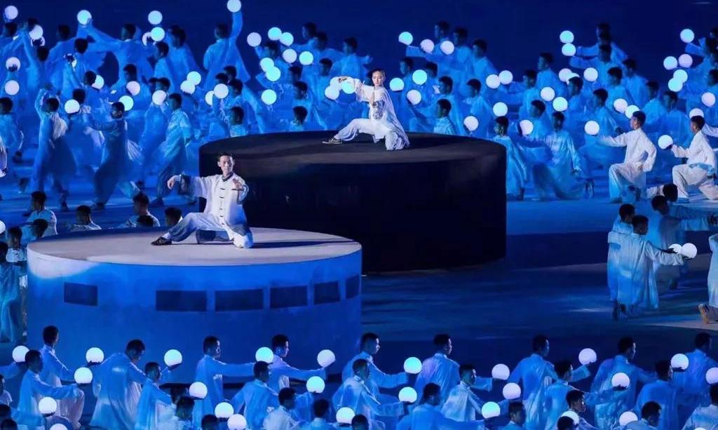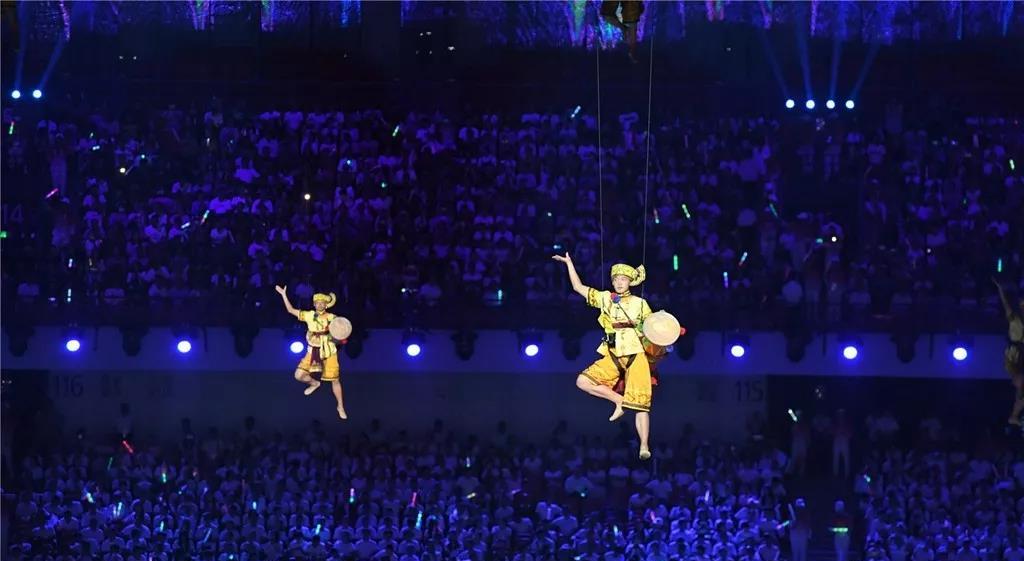 5塊總面積,超過3000平米的輕型透明網幕,130余臺高清投影機覆蓋上萬平米場地,通過威亞的技術手段和地面投影相呼應。地面、空中、立面多維度的表演空間,將各種特色民族元素呈現出來,呈現了各族人民的幸福生活,書寫出一張張民族文化名片。當現場各族人民跳起歡快的舞蹈,當各民族美麗的服飾在現場轉出最絢麗的弧度,展現出各民族團結奮進、朝氣蓬勃的精神風貌。作為河南特色的少林和太極兩個重要元素也在本次開幕式精彩亮相,由塔溝武校數千名演員演繹。隨著音樂節(jié)奏的轉換,他們變幻各種造型,動靜結合、氣勢恢宏,讓觀眾更加了解精彩河南。