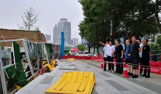 尤其是亳都古巷考古基坑面積較大,且全部被水淹沒,該地塊東側(cè)緊鄰古城墻,西側(cè)緊鄰鄭州文廟和中建文苑,盲目抽排基坑積水可能會對周邊古建筑及居民小區(qū)帶來安全隱患。面對險情,為確保項目現(xiàn)場安全,鄭州商都商業(yè)發(fā)展有限公司立即啟動緊急預(yù)案,明確防汛搶險責(zé)任分工,迅速開展防汛搶險工作。