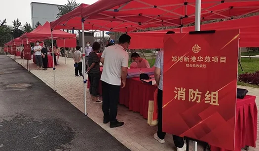 鄭地新港華苑項(xiàng)目于2021年8月26日下午,順利完成由鄭州市城建局牽頭組織,人防、消防、質(zhì)監(jiān)、規(guī)劃等部門(mén)共同參與的聯(lián)合驗(yàn)收,是疫情期間第一個(gè)通過(guò)聯(lián)合驗(yàn)收的建設(shè)項(xiàng)目。為嚴(yán)格落實(shí)鄭州市新冠肺炎疫情的防控要求,新港華苑項(xiàng)目部提前制定了周密的疫情防控方案,采取了妥善的疫情防控措施,有序組織進(jìn)入院區(qū)人員掃健康碼、檢查48小時(shí)核酸檢測(cè)結(jié)果、測(cè)量體溫、酒精消殺、分發(fā)防疫包等。經(jīng)過(guò)啟動(dòng)儀式、書(shū)面匯報(bào)、現(xiàn)場(chǎng)巡查、聯(lián)動(dòng)測(cè)試等環(huán)節(jié),鄭地新港華苑項(xiàng)目順利完成聯(lián)合驗(yàn)收工作。