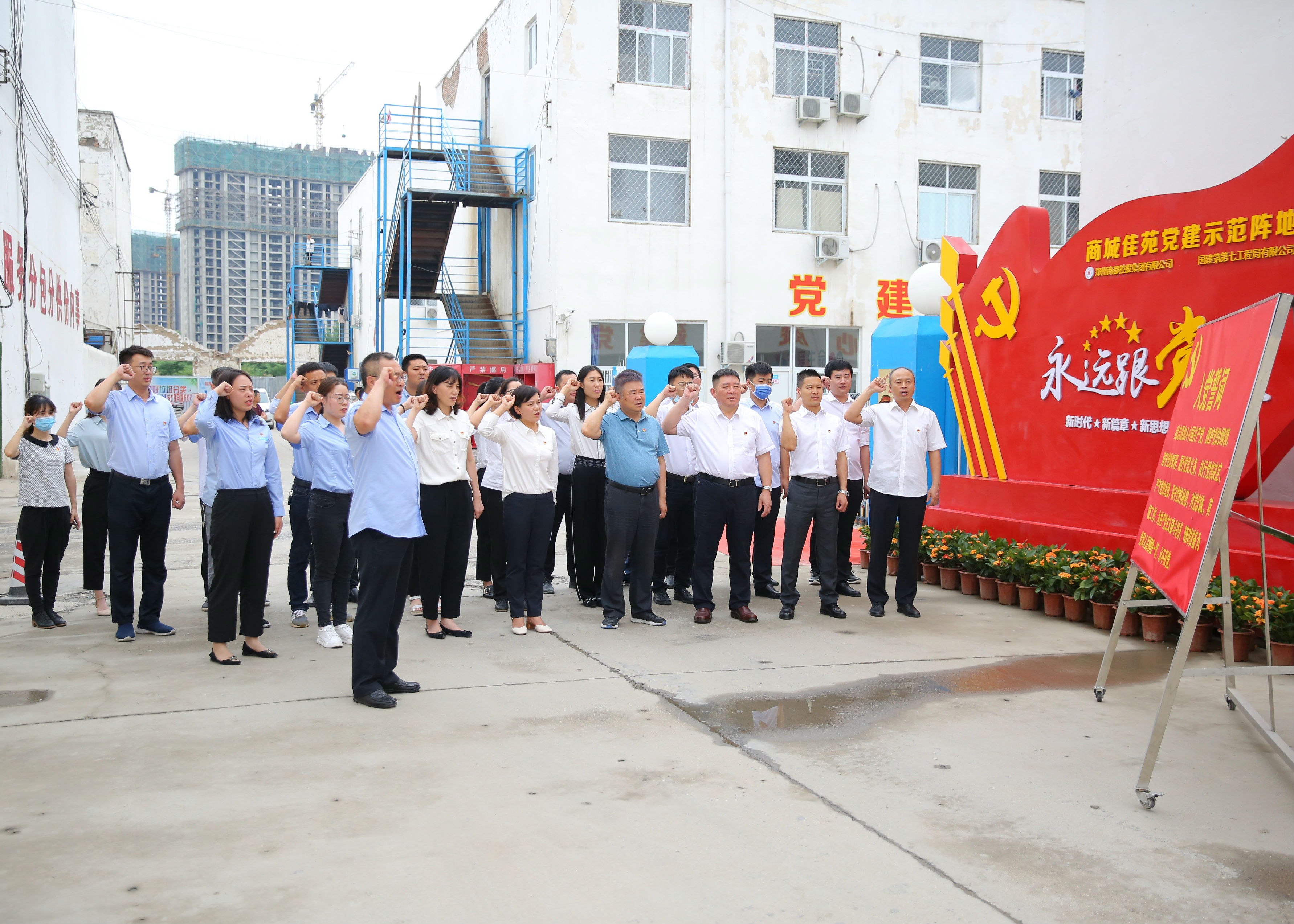 7月1日,在這個美好而極富紀念意義的日子里,為慶祝中國共產(chǎn)黨成立99周年,中共鄭州商城佳苑項目臨時支部委員會成立大會暨揭牌儀式在鄭州管城回族區(qū)商城佳苑項目部舉行。